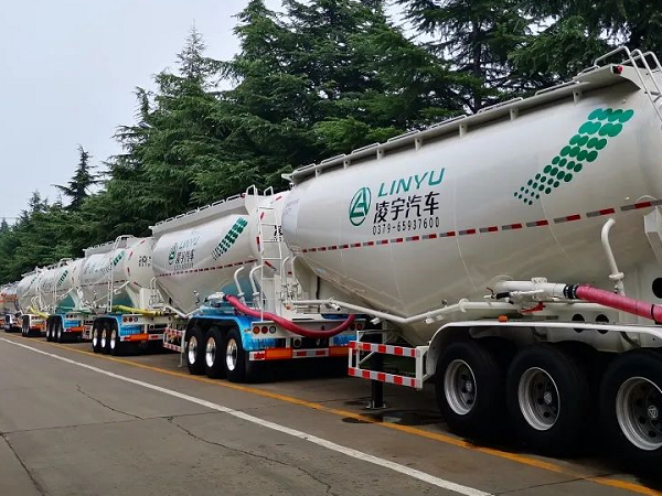 經過技術人員和車間員工近2個月的辛勤努力,6臺中集凌宇舉升式粉罐半掛車于4月23日離開工廠,踏上了交付用戶的旅程。